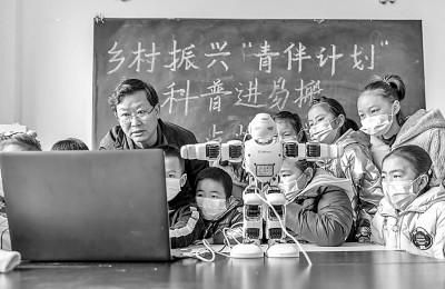 在贵州省毕节市黔西县锦绣街道“新市民·追梦桥”服务中心,科普宣传员给孩子们讲解机器人的操作原理。新华社发