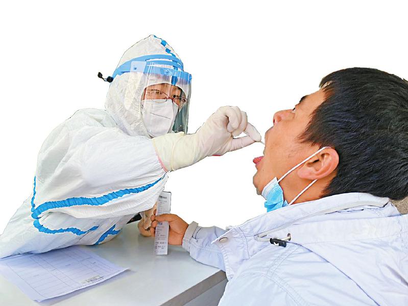 2月3日,攀枝花市中心医院核酸检测采样点里,医护人员正进行采样。 四川日报全媒体记者唐子晴摄