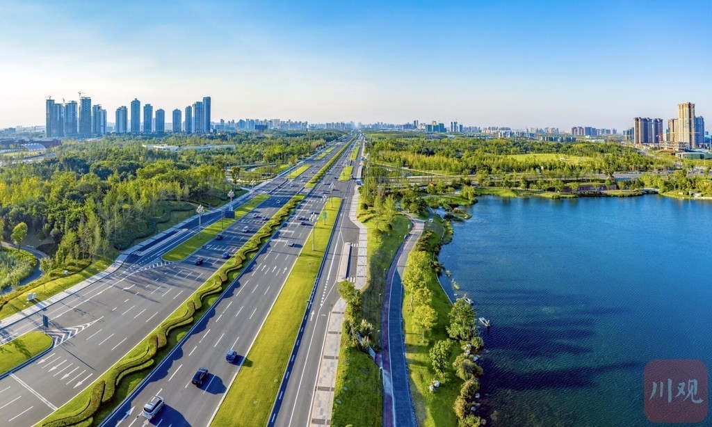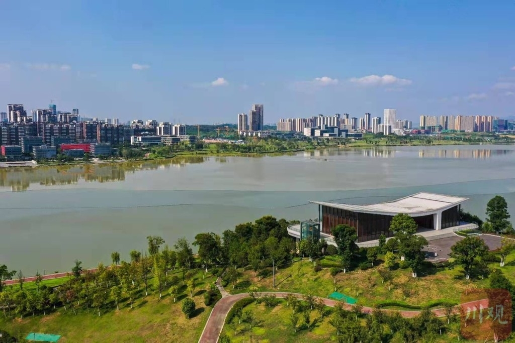 在具体的建设中,天府新区按照“突出公园城市特点”的要求,锚固“70.1%生态空间”,依托山水湖泊的生态骨架,构建起“大开大阖、城绿共融”的空间架构。