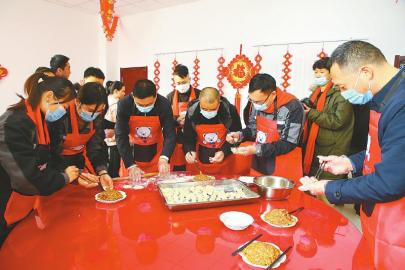 广元经济技术开发区组织留厂过年职工一同包饺子。 高志农 摄