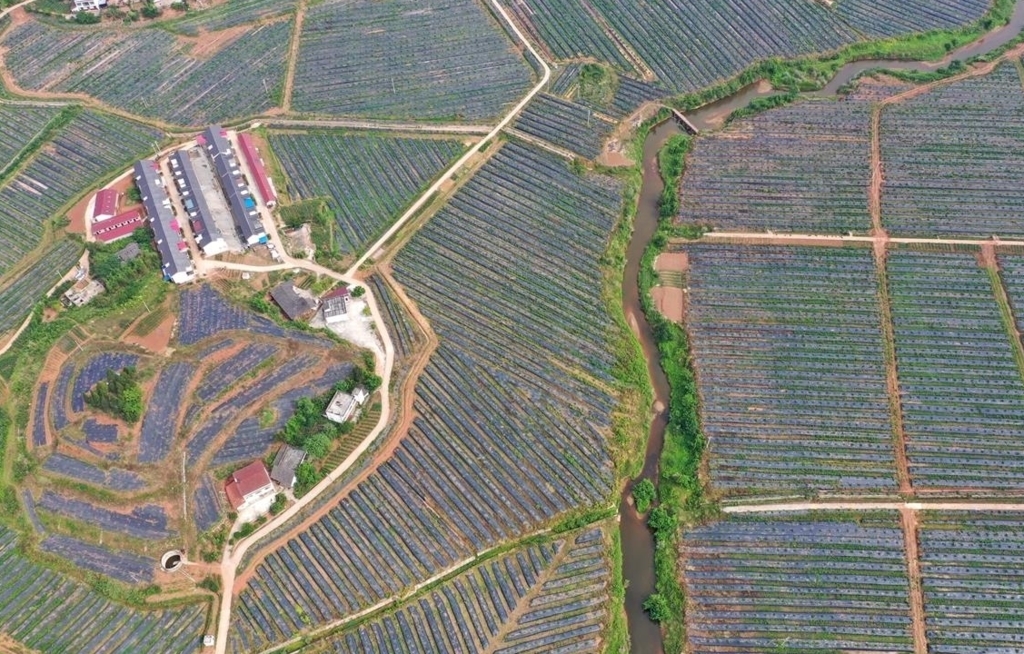 南充市蓬安县锦屏镇中坝社区成块的农田。 李向雨 摄