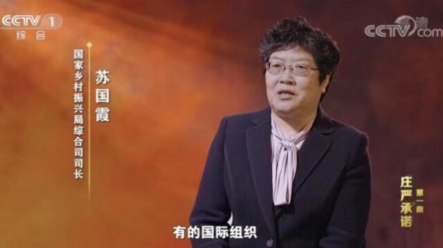 《摆脱贫困》专题片显示,苏国霞为国家乡村振兴局综合司司长。视频截图