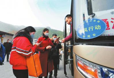2月20日,巴中市通江县,外出农民工在扫码上车。通江县开展农民工返岗“春风行动”,实施“点对点、一站式”直达运输服务。 程聪摄(视觉四川)