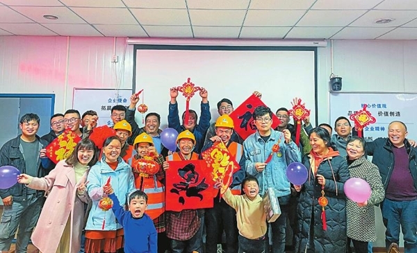 2月12日正月初一,中建三局的建设者在工地上欢聚一堂。为了大运会的交通保障项目-成洛简快速路,200多名建设者选择了就地过年。
