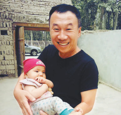 天津援疆干部席世明抱着维吾尔族小姑娘“小石榴”(资料照片)。新华社发