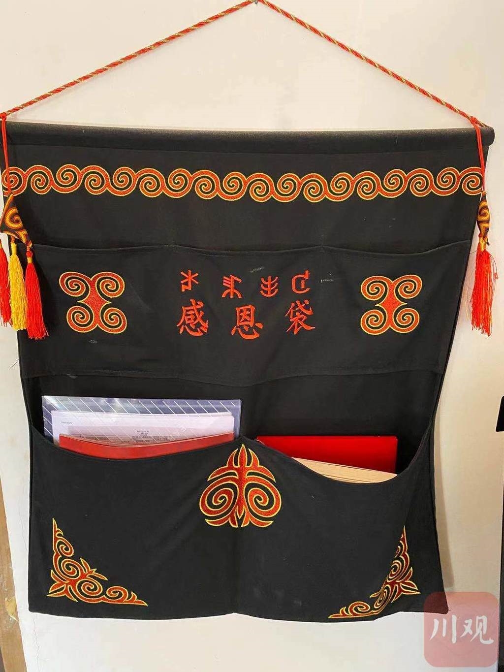 走进村民拉马日尾的家,客厅的墙上挂着“感恩袋”,寓意“感党恩、听党话、跟党走。”感恩袋里装着几样物品,其中有一份贫困户的“精准帮扶手册”,里面记录着从2017年后每个月的帮扶工作记录和成效。还有一张荣誉证书,表彰她家在2019年获得“洁美家庭示范户”。