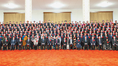 2月25日,全国脱贫攻坚总结表彰大会在北京人民大会堂隆重举行。会前,习近平等会见全国脱贫攻坚楷模荣誉称号获得者,全国脱贫攻坚先进个人、先进集体代表,全国脱贫攻坚楷模荣誉称号个人获得者和因公牺牲全国脱贫攻坚先进个人亲属代表等,并同大家合影留念。新华社记者 鞠 鹏摄