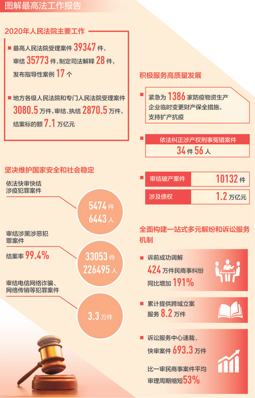 2020年,人民法院坚持目标导向和问题导向,坚持深化改革与信息化建设紧密结合,不断提高审判执行质效和司法公信力。