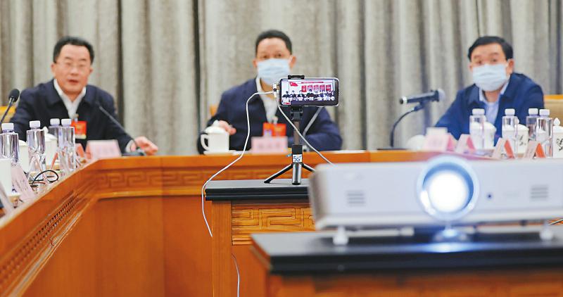 3月9日,国家发展改革委各部门相关负责人通过网络视频连线,听取四川团代表意见建议。图为四川团驻地会场。川报集团特派记者欧阳杰摄