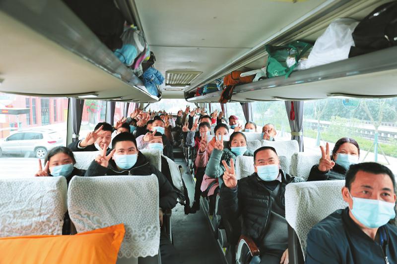 2月16日,宜宾翠屏区81名农民工坐专车赴广东中山返岗复工。