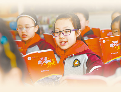安徽省合肥市和平小学学生阅读党史读物。蒋娟娟摄(人民视觉)