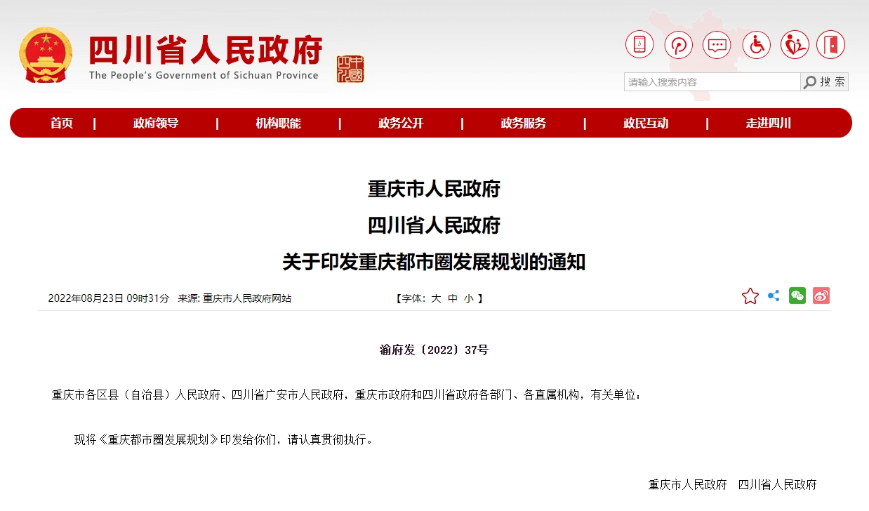 8月23日,四川在线记者从四川省人民政府网站获悉,由重庆市人民政府、四川省人民政府联合印发的《重庆都市圈发展规划》(以下简称《规划》)日前正式公开发布。