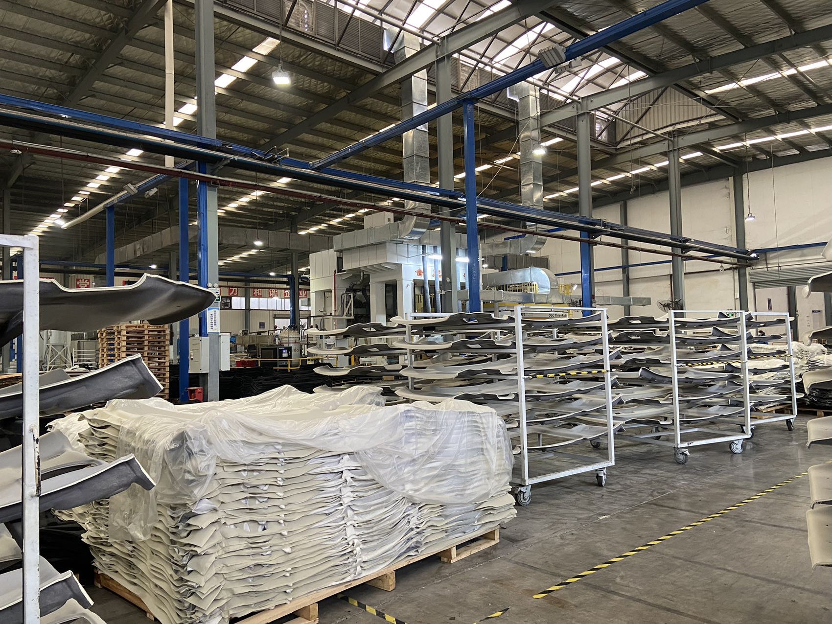 当天,在拓普公司的3个大型厂房中,随处可见机械手臂不停挥舞。某台机械中,一张张汽车顶棚被制作出来后,便被装上货车,随即发往重庆。