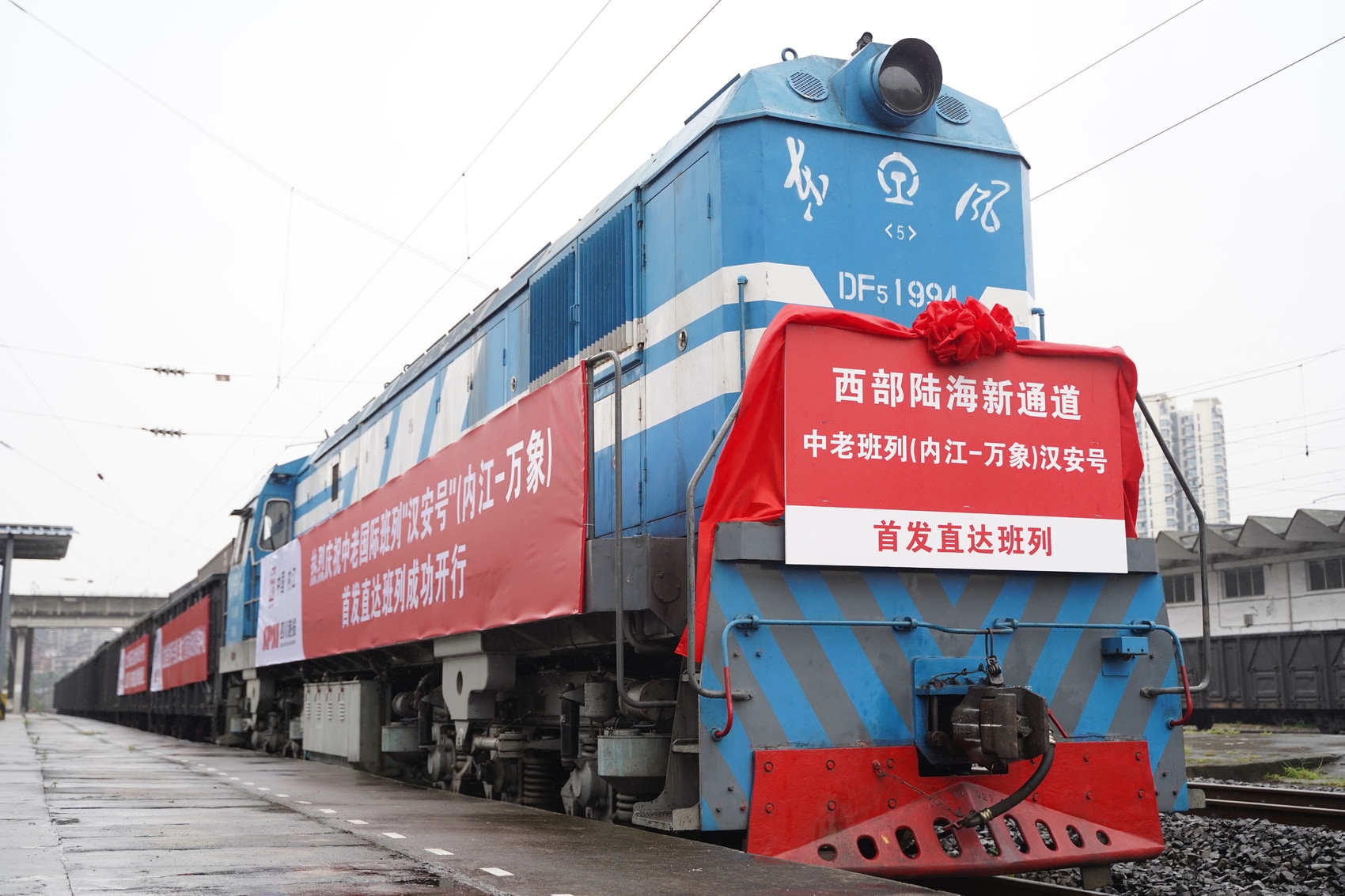 6月21日上午10时20分许,嘹亮的火车汽笛声响起,一列满载着20柜柴油机和装修材料的列车“汉安号”从内江牌楼火车站出发,直驶老挝万象,这也是内江常态化开行蓉欧+东盟国际班列、中欧班列之后的第三条直达国际班列线路。