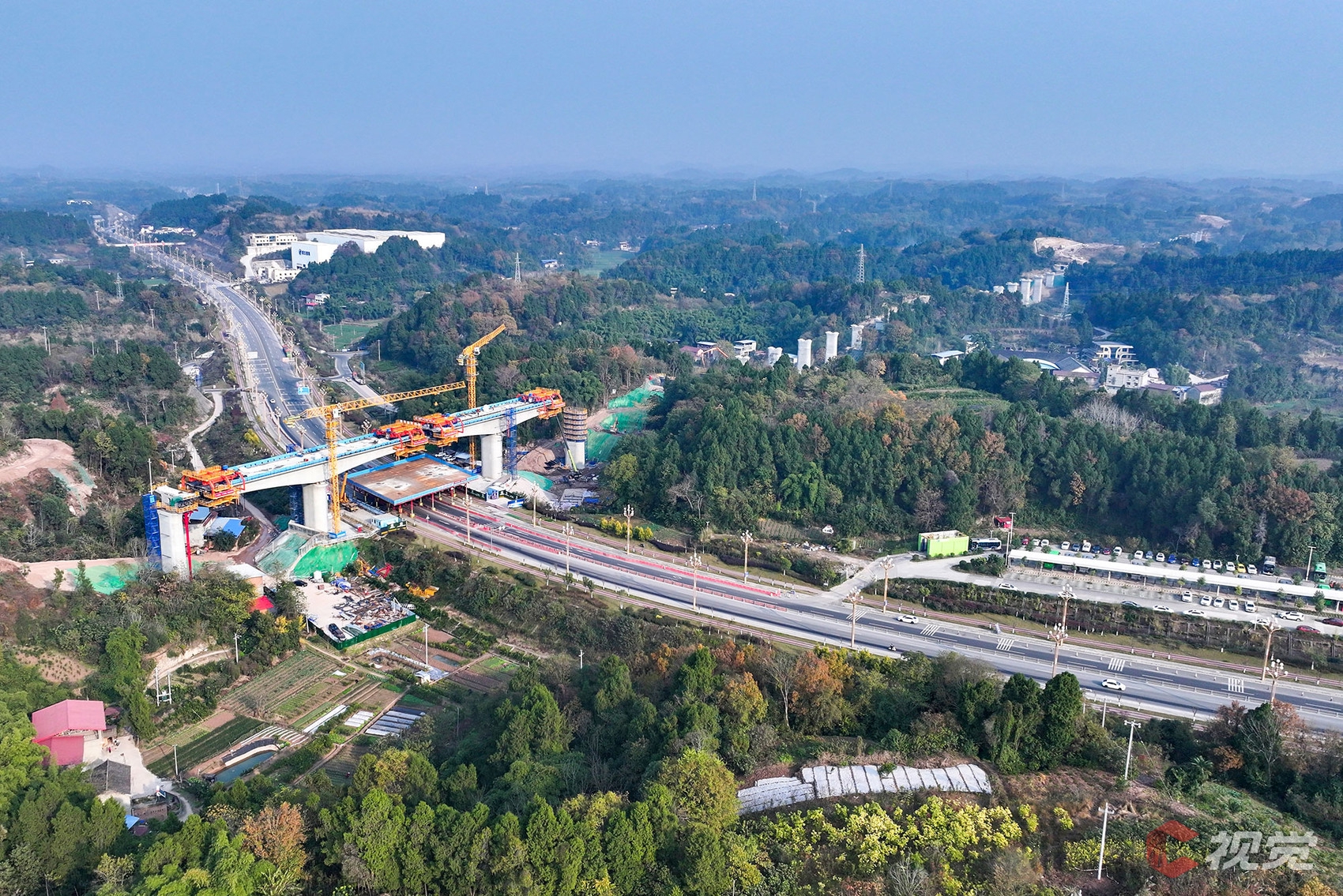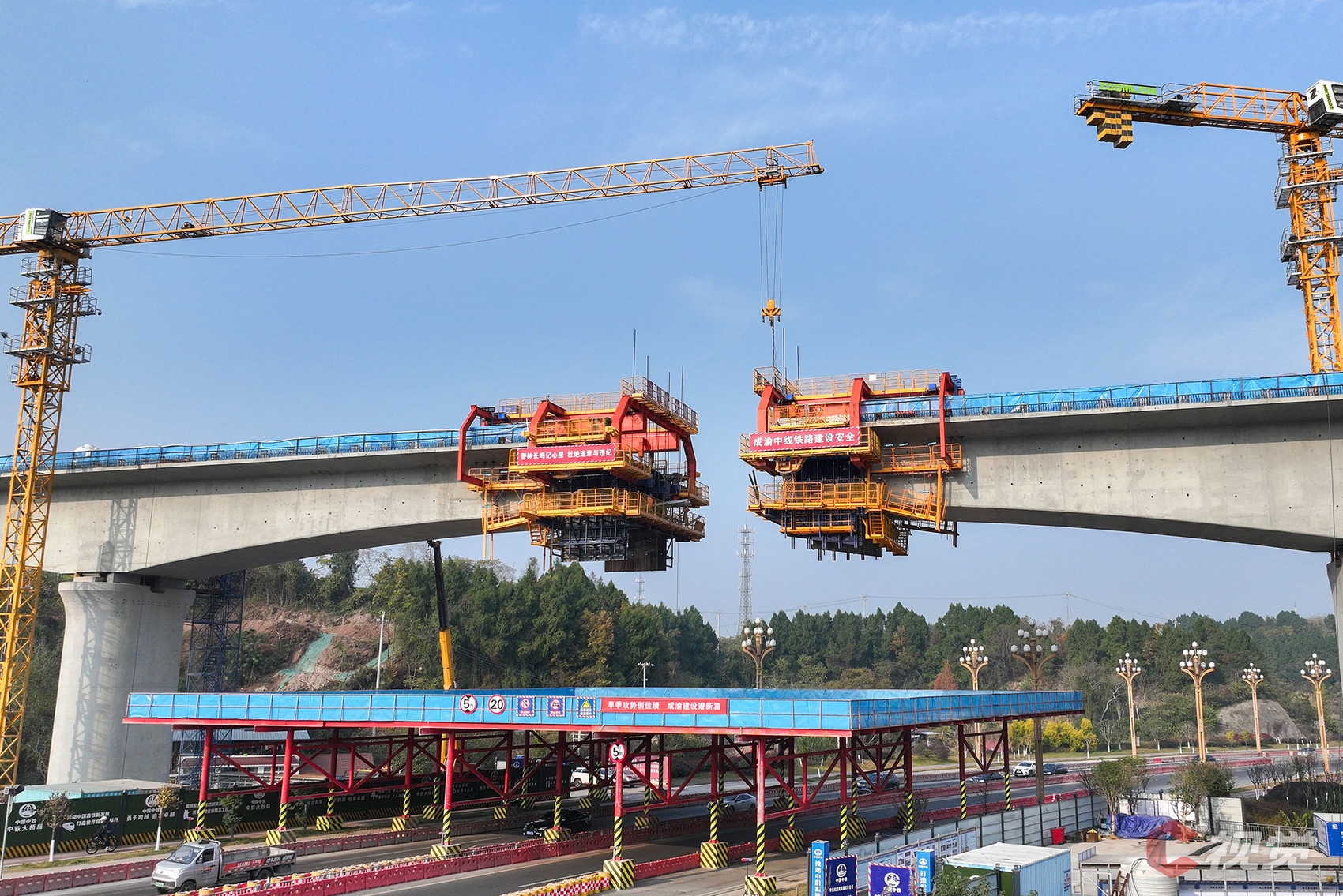 12月17日,建设中的成渝中线高铁线路简阳标段。