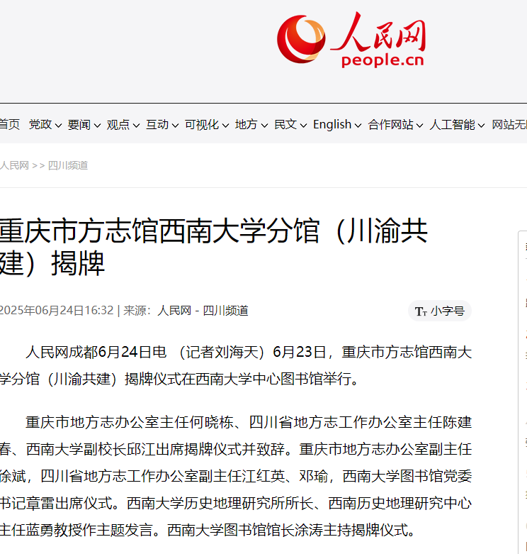 【人民网-四川频道】重庆市方志馆西南大学分馆(川渝共建)揭牌