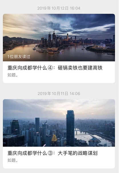 去年国庆假期过后,一组以此为题的文章,连续5天刊发在重庆知名自媒体公众号“重庆马路社”上,引发成渝两地各界的关注。