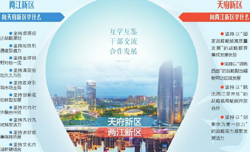 到了2016年,成都市开展对标管理,天府新区明确提出“近学两江、远学浦东”的对标思路。与此同时,两江新区也向具有后发优势的天府新区展开学习。