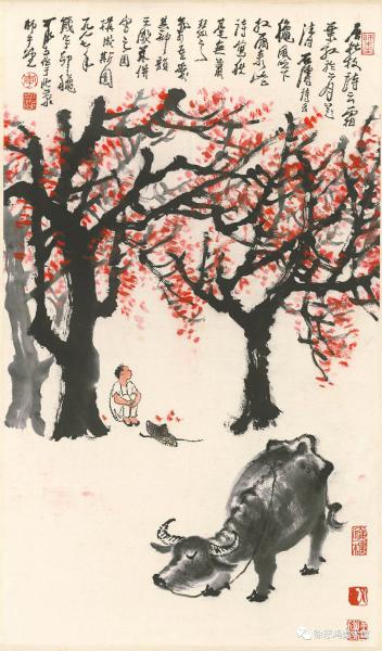 1943年,李可染来到重庆国立艺术专科学校任教。在巴蜀两地,李可染与林风眠共续师生之情,与徐悲鸿相交定友,与老舍相遇成至交,与傅抱石相见恨晚于金刚坡,还参观了张大千的敦煌展,并结识了郭沫若、田汉等。他最为著名的“画牛”也是从四川开始。1956年,李可染第二次踏入巴山蜀水,过三峡,攀峨眉,下夹江,过眉山。此次入蜀后创作的《响雪》《嘉定大佛》《杜甫草堂》等,皆是他对景落墨的作品,并用西画写生的方式和光影的表现手法,开启了他在中国山水画史上独一无二的创举。