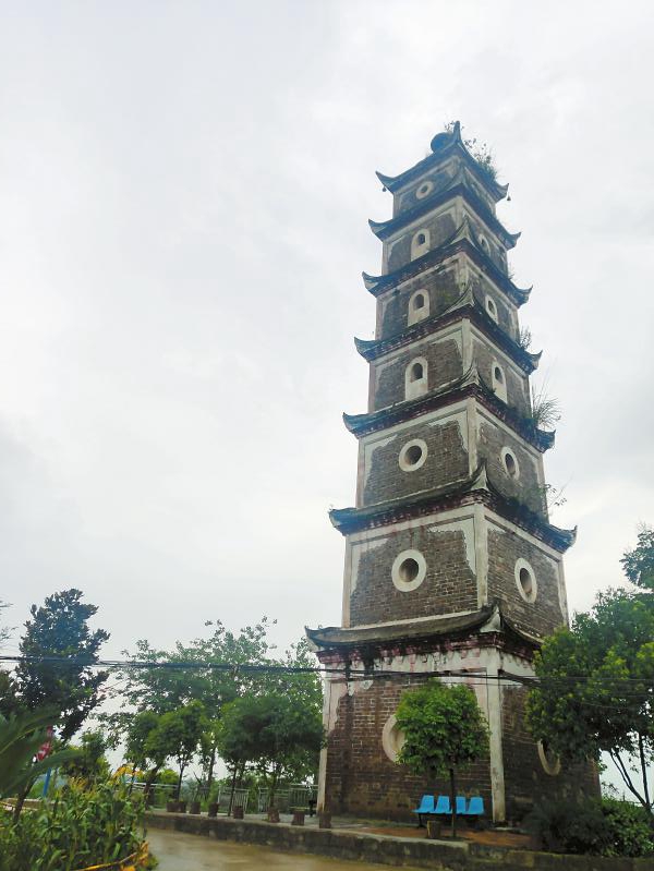 6月30日,记者从内江资中县城出发,驱车前往唐明渡。汽车从321国道驶入乡村公路后,远远望见一座白色高塔,名为“三元塔”。而大名鼎鼎的唐明渡口就在距它不远处。按照当地村民指引,沿着塔边窄窄的土路向下走去,这个往昔让文人画匠眷恋的古渡口,如今已是另一番景象——野草蓬生、乱石堆岸。