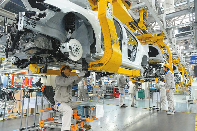 成都市龙泉驿区的一汽-大众成都分公司总装车间,工作人员正在忙碌作业。 本报记者 李向雨 摄(视觉四川资料图片)