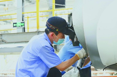 成都动车段职工正在对动车组进行检修。胡志强摄/光明图片