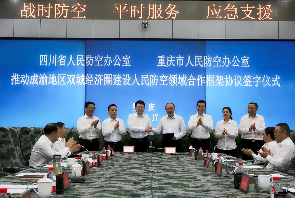 9月17日,四川省人民防空办公室和重庆市人民防空办公室举行推动成渝地区双城经济圈建设人民防空领域合作框架协议签字仪式暨联合小组第一次联席会议。会上,两地人防部门签署了《共同推动成渝地区双城经济圈建设人民防空领域合作框架协议》(简称《合作框架协议》)。