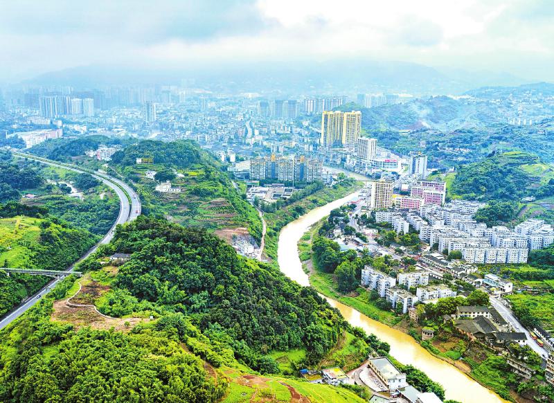 鸟瞰泸州市城区。泸州正充分利用区位优势,加强与滇黔地区合作,突出泸州在成渝地区双城经济圈建设中的倍增效应和放大作用。