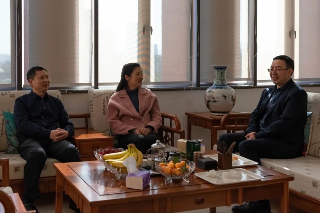 图为夏小平、邓瑜与杨新涯座谈交流