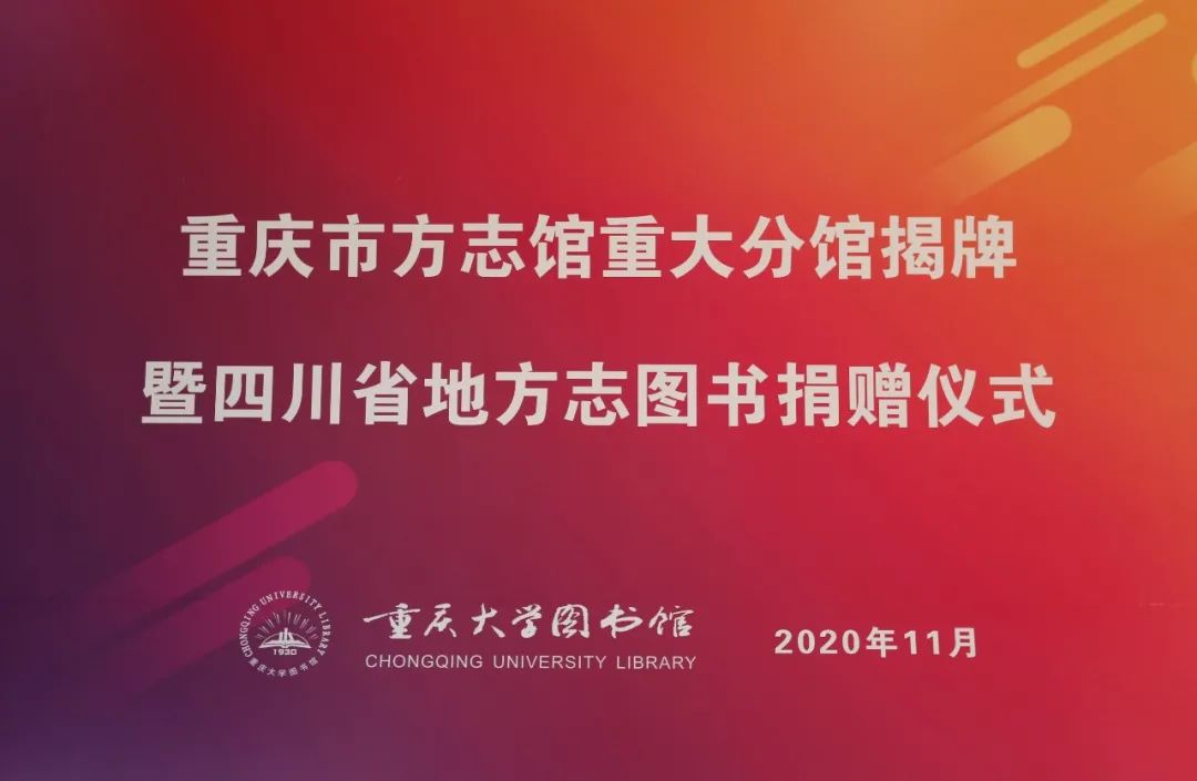 2020年11月11日下午,重庆市方志馆重庆大学分馆(川渝共建)揭牌暨四川省地方志书捐赠仪式在重庆大学图书馆举行