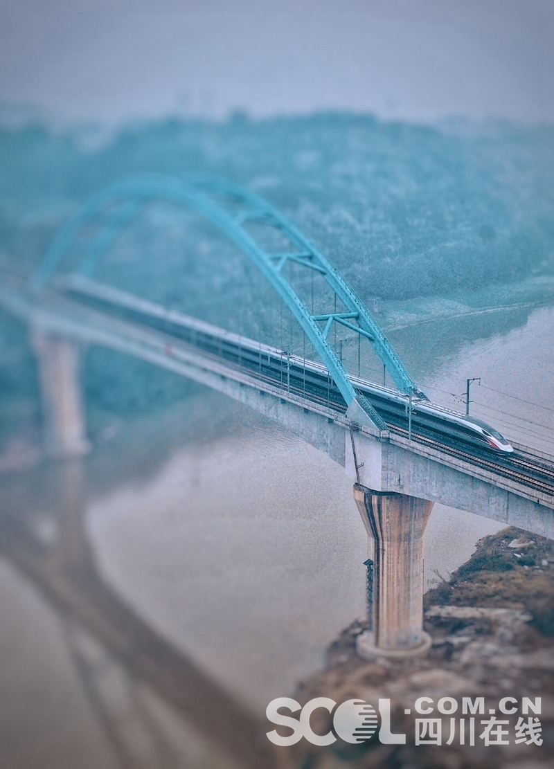 成都开往重庆方向的复兴号驶过资阳市沱江特大桥