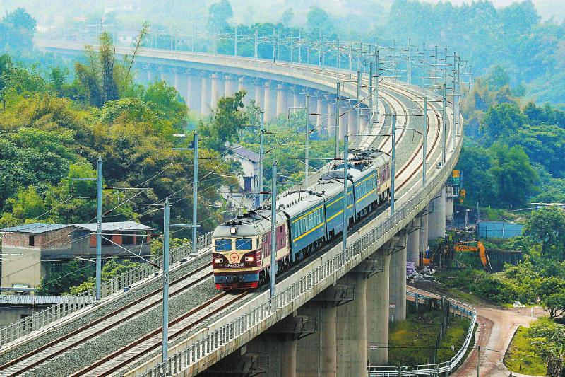 据中国铁路成都局集团公司介绍,高速联动的城际铁路网,将为推进成渝地区双城经济圈建设提供重要支撑。目前纳入“十四五”规划的项目中,向东由成渝中线高铁、成达万高铁形成高标准沿江高铁通道,向南由渝昆铁路、成自宜高铁完善西部陆海新通道,向北由渝西高铁、成都至西宁铁路、成兰铁路构建对接丝绸之路经济带的国际大通道。新建绵泸高铁从绵阳经内江、自贡抵达泸州,将联通成渝地区的南北中轴。