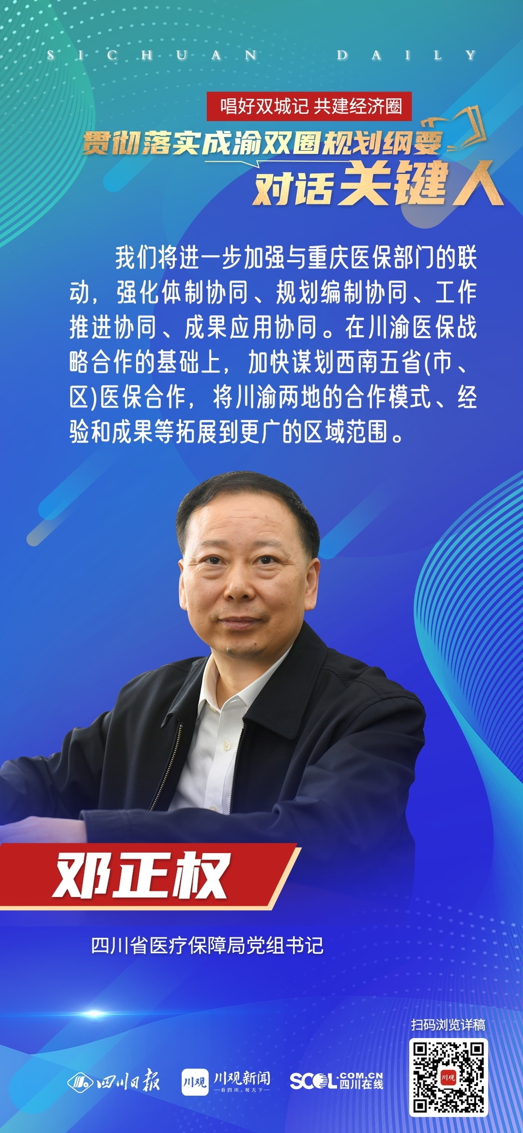 唱好双城记 共建经济圈·对话关键人⑲丨四川省医疗保障局党组书记邓正权:加快推进信息平台建设,让川渝群众享受便利化医保服务