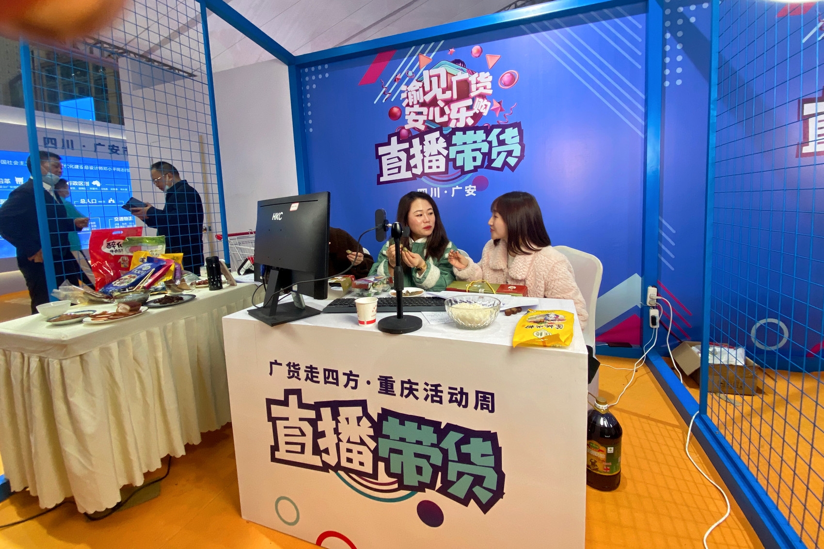 “广安特色盐皮蛋,黄是咸鸭蛋的黄,青是皮蛋的青,这是我们家乡的味道!现在下单有优惠哦!”在“广货重庆周”,带货主播“恭喜发财欢喜”在直播间向网友发出购买号召。