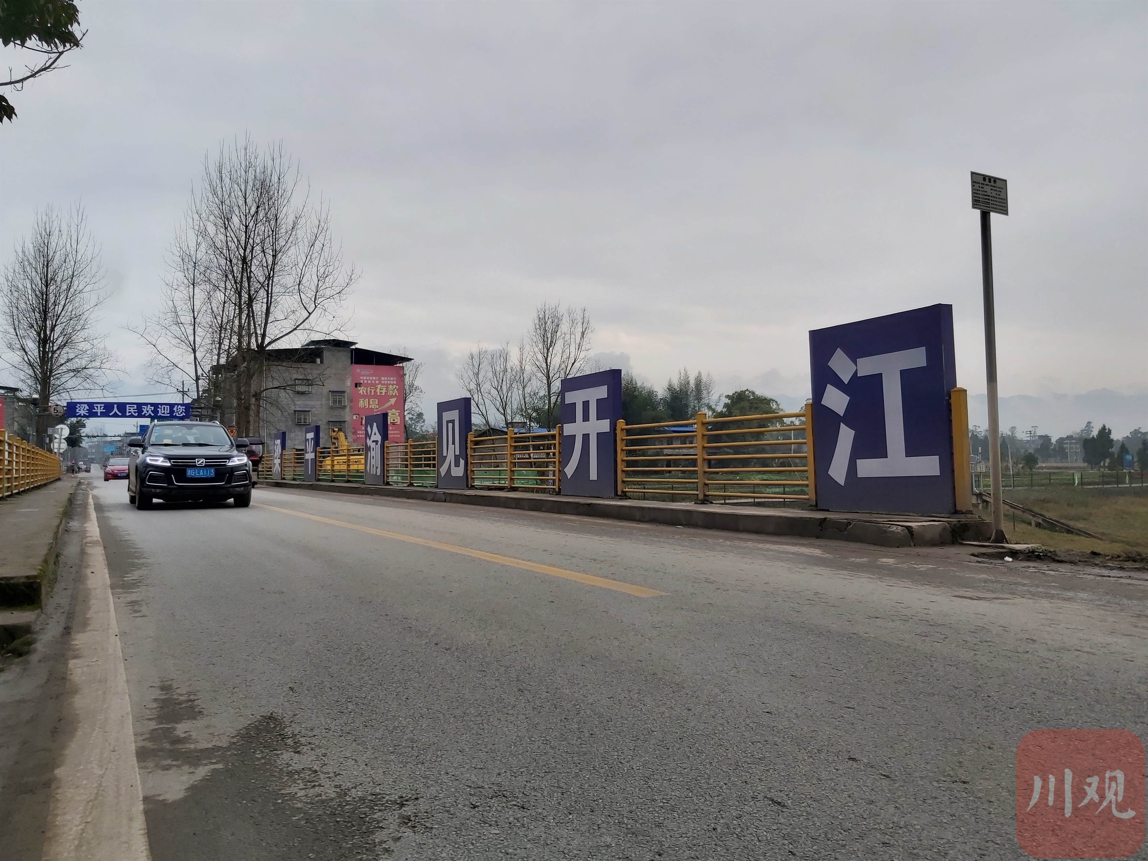 春节来临,联盟桥上,挂着“川”“渝”“粤”“陕”“浙”等各地牌照的车辆从桥上疾驰而过,在川渝两地来回穿梭;桥下,新盛河两岸的高标准农田连绵成片,修整一新,只待下个播种季的来临。