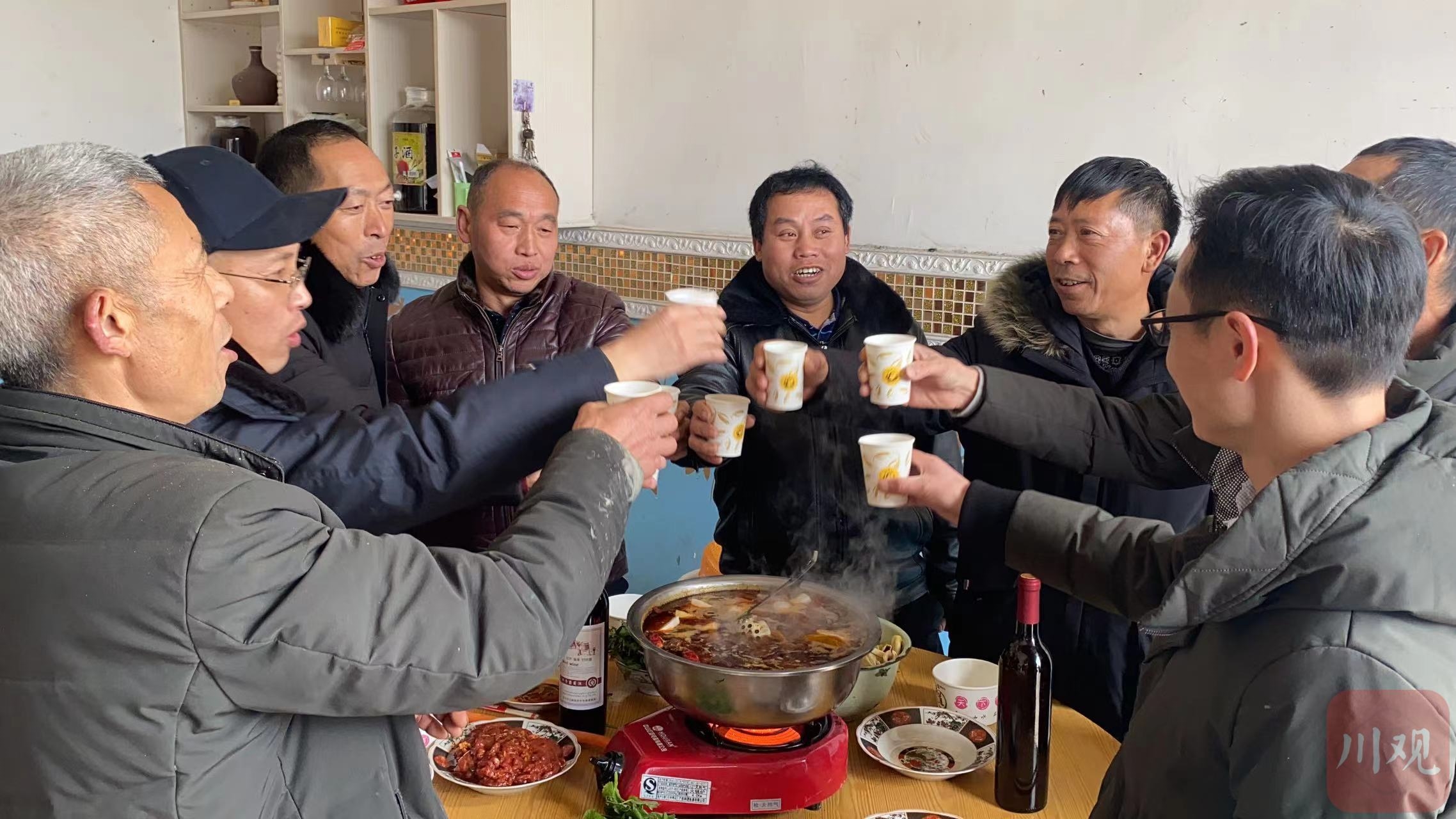 “新年快乐!”举杯,同饮。在不时的欢笑声中,大家一起享用着川渝两地的美食,一同品尝着家乡的年味。