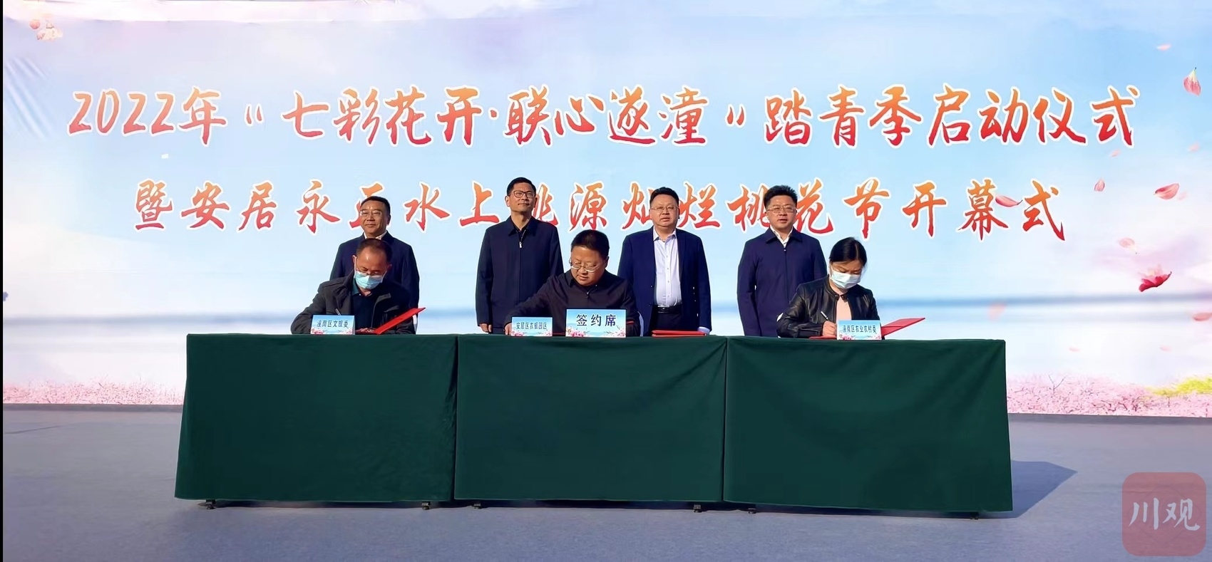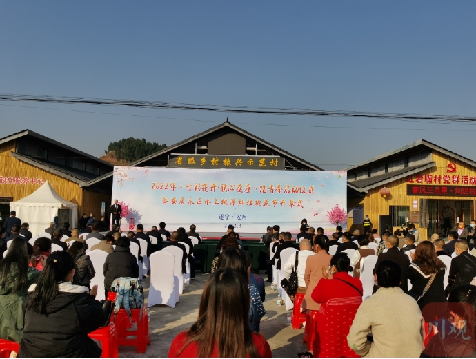 3月7日,2022年“七彩花开·联心遂潼”踏青季启动仪式暨安居永正水上桃源灿烂桃花节开幕式现场,遂宁市安居区与重庆市潼南区签订了现代高效特色农业发展战略合作协议及文化旅游协同发展战略合作协议。