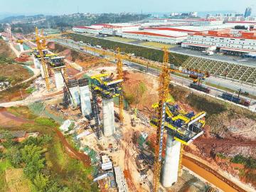 三月九日,位于宜宾三江新区的渝昆高铁宜宾段沙坪镇特大桥项目现场。渝(重庆)昆(昆明)高铁是我国﹃八横八纵﹄高铁网京昆通道的重要组成部分。兰锋摄(视觉四川)