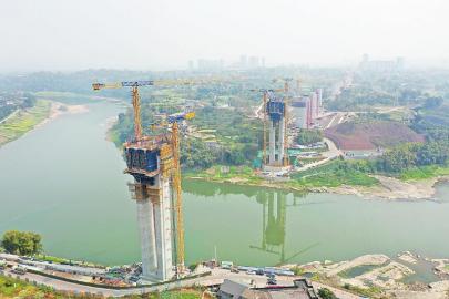 泸州沱江特大桥主桥位于泸州市郊,为渝昆高铁“一桥一隧”控制性工程之一,全长2613.315米。项目中的双柱式V型桥塔在国内铁路同类桥型中首次采用,有近40层楼高,主跨采用124米+240米+124米连续梁跨越沱江,为全线最长连续梁。