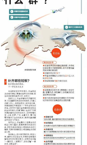 打造成渝世界级机场群,四川如何行动?3月15日,记者采访了省发展改革委相关人士和民航专家。□四川日报全媒体记者王眉灵王成栋A这个群有什么特点?可带动整个西部,实现以“点”带“线”带“面”建设成渝世界级机场群,在成渝地区双城经济圈相关规划中早有提及,并作为成渝地区合力建设现代基础设施网络和打造一体化综合交通运输体系的首要任务。
