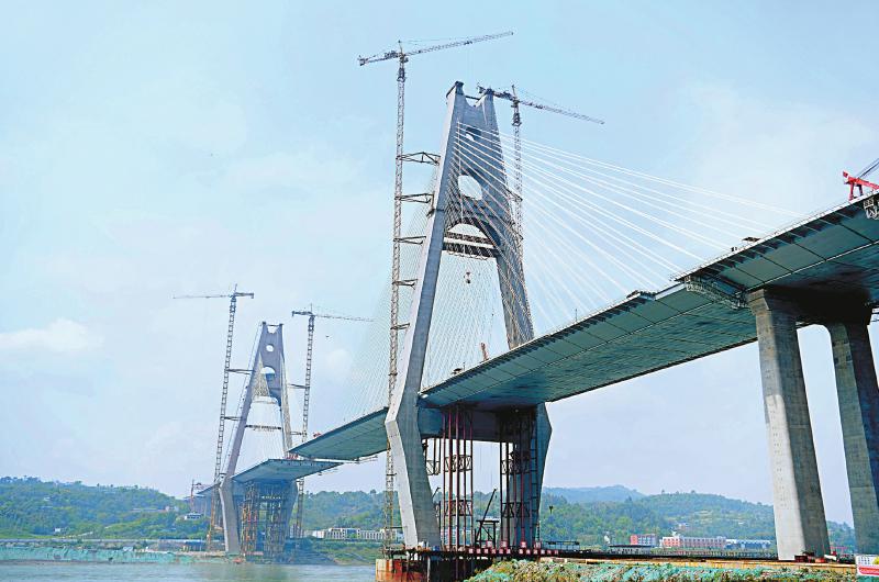 4月13日,建设中的宜宾临港公铁两用长江大桥。大桥建成通车后,将进一步推动川南城市群融入成渝地区双城经济圈建设。 胡志强 摄(视觉四川)