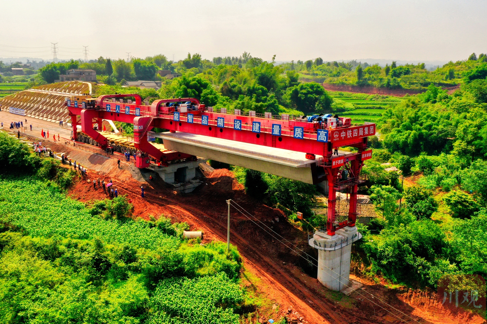 5月31日10时,随着一孔来自泸州的箱梁稳稳落在宜宾市江安县境内的梁屋基大桥上,标志着中铁四局承建的渝昆高铁站前四标架梁施工实现跨市,为实现全线工期目标奠定了基础。