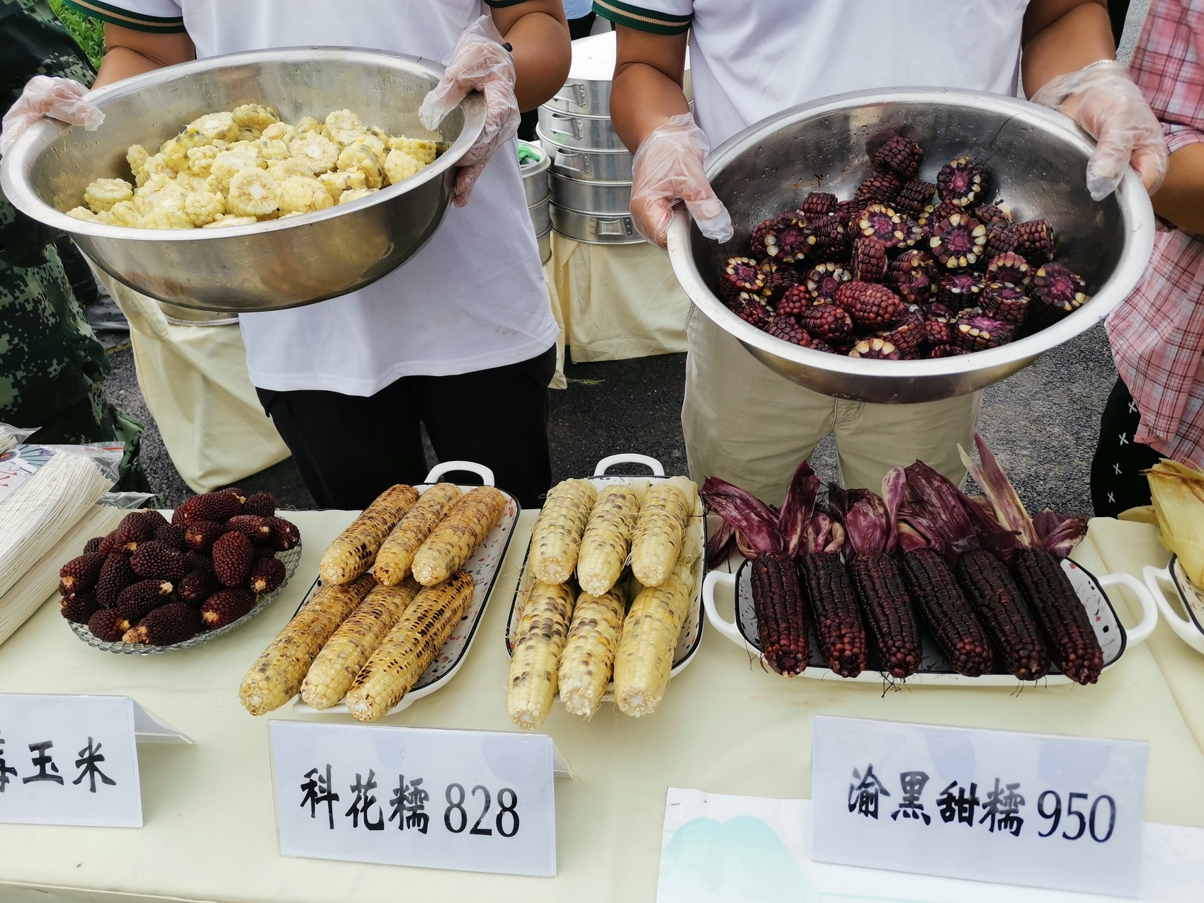 在展台另一侧,煮熟的甜糯玉米引来参会者争相品鉴,“又甜又糯,好吃。”得到参会者的肯定后,重庆市农科院玉米研究所所长杨华抓住机会,赶忙推介:“这是我们带来的高营养甜糯玉米代表品种,这个品种叫‘渝黑甜糯950’,在甜和糯的基础上,花青素含量也非常高,由于质优价高,种植这个品种,每亩可多卖1000多元。”