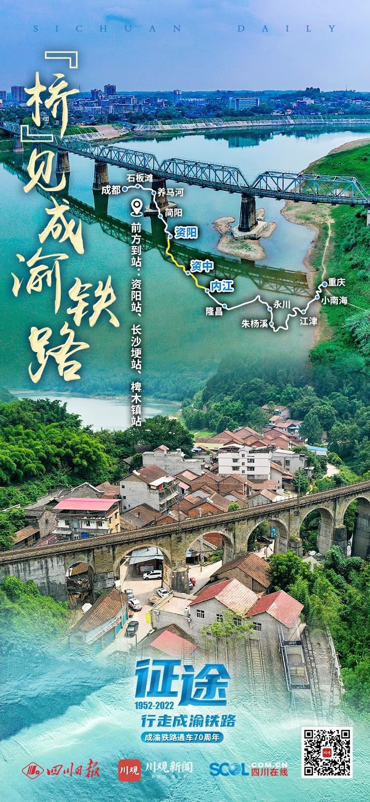 桥,是成渝铁路上的一个特殊符号。70年前,成渝铁路通车,数百座桥梁拔地而起;70年后,这些桥梁依旧发挥着重要作用,将人流、车流、物流紧密联系在一起。