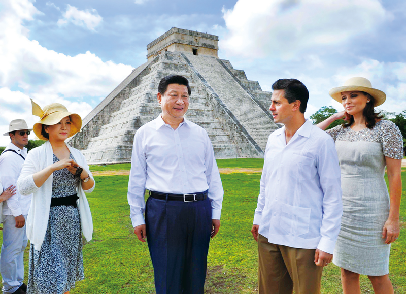 2013年6月6日,为推进中墨两个文明古国的文化交流,国家主席习近平应培尼亚总统邀请参观奇琴伊察玛雅文明遗址。 新华社记者 饶爱民/摄