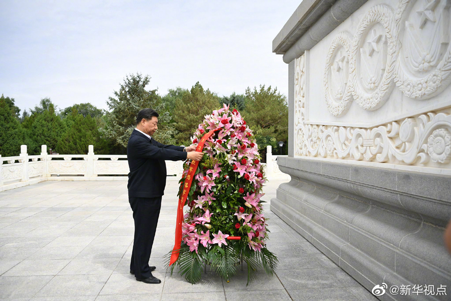 习近平向中国工农红军西路军革命先烈敬献花篮