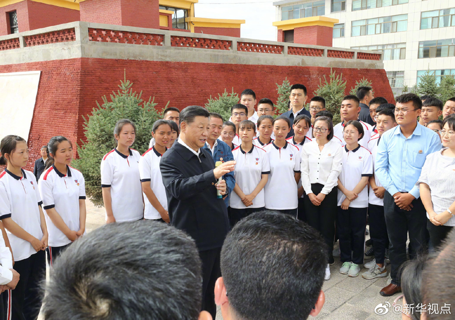 正在甘肃省考察的习近平总书记20日下午抵达张掖市山丹县,前往山丹培黎学校和山丹马场考察调研,了解当地职业教育培训和祁连山生态环境修复保护等情况。(文字记者:张晓松、朱基钗 摄影记者:鞠鹏、谢环驰)