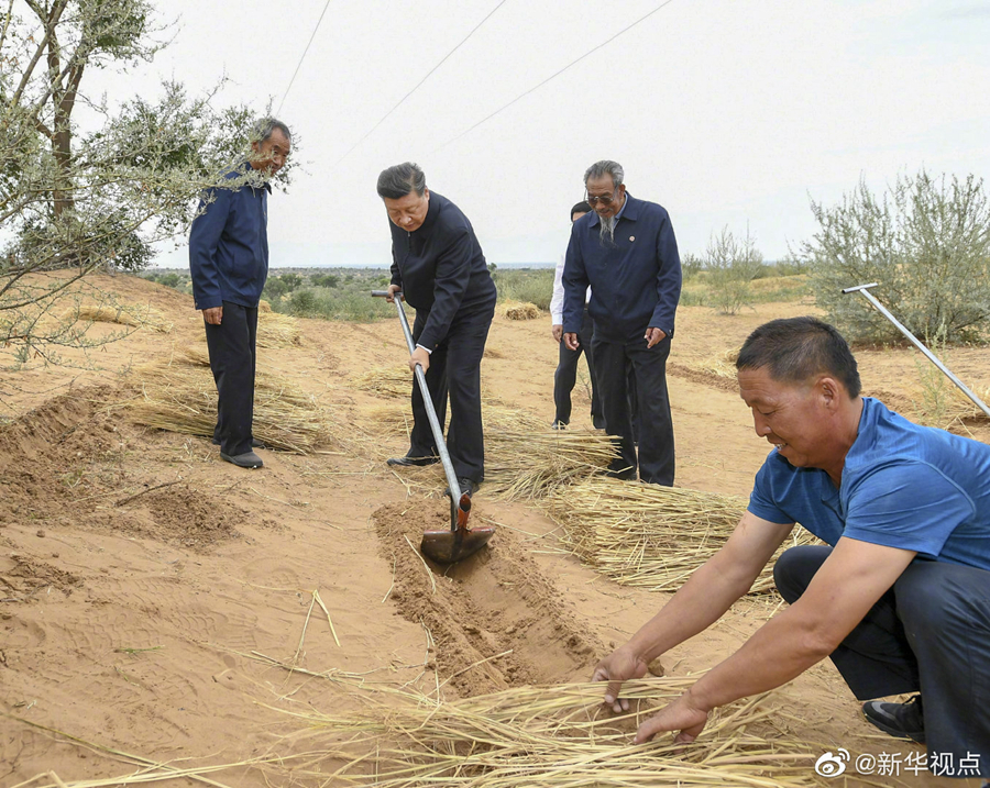 2019年8月21日,习近平总书记继续在甘肃考察。上午,习近平来到武威市古浪县黄花滩生态移民区富民新村,了解易地搬迁群众生产生活及脱贫致富情况。随后,他乘车前往八步沙林场,实地察看当地治沙造林、生态保护等情况。(文字记者:张晓松、朱基钗 摄影记者:鞠鹏、谢环驰)