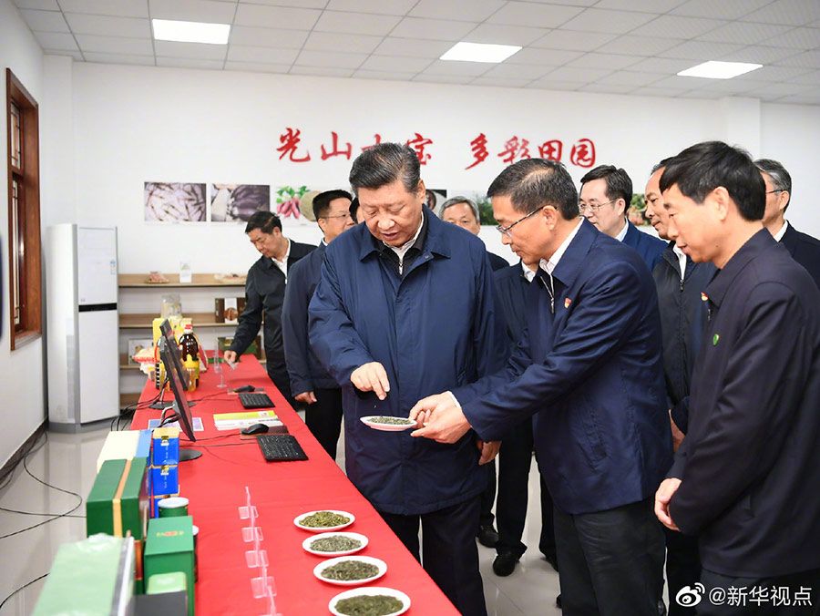 习近平总书记17日上午前往河南省光山县司马光油茶园和文殊乡东岳村,考察调研当地脱贫攻坚工作成效和中办在光山县扶贫工作情况,看望慰问老区群众。(文字记者:张晓松、朱基钗 摄影记者:鞠鹏、谢环驰)