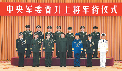 中央军委举行晋升上将军衔仪式 习近平颁发命令状并向晋衔的军官表示祝贺